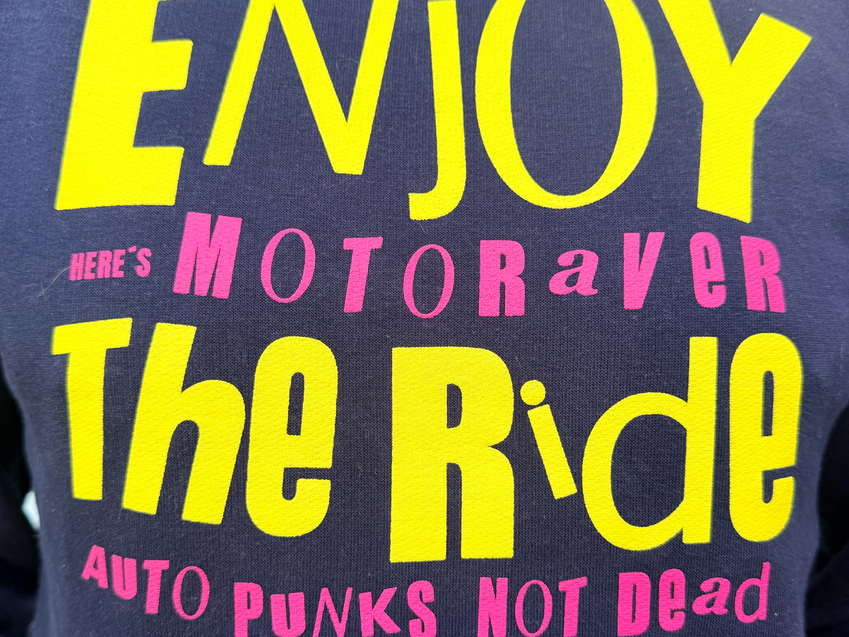 Unser neues Sweatshirt. Für jeden Roadtrip mit den Sex Pistols im Kassettenradio. Schwerer Stoff, schmaler Schnitt. Natürlich in schwarz und mit pink-gelber Sex-Pistols-Typo im hochwertigen Siebdruck + Motoraver-Etikett. Ein Statement für echte Motoraver. Voll Fair-Trade (Earth Positive, GOTS-zertifiziert, Member of Fairware Foundation). Bio-Qualität, also nix KIK-Schrott oder Fast-Fashon-Müll. Der Sweater ist hochwertig verarbeitet und behält auch nach langer Fahrt seine Form, Farbe und Druck. Also rein in die Klamotte und Abfahrt!